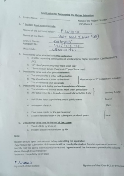 | The sponsorship for Sanjana Parimi has been continued by Gayatridevi and Ravi Ika |