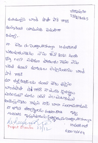 | Bighelp thanks Vamshi Bommavaram for kindly sponsoring the education of Durga Akshaya Chatragadda. |