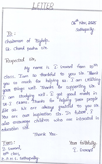 | Bighelp thanks Praveen Kumar Valapadasu for kindly sponsoring the education of Sravani Indoju. |