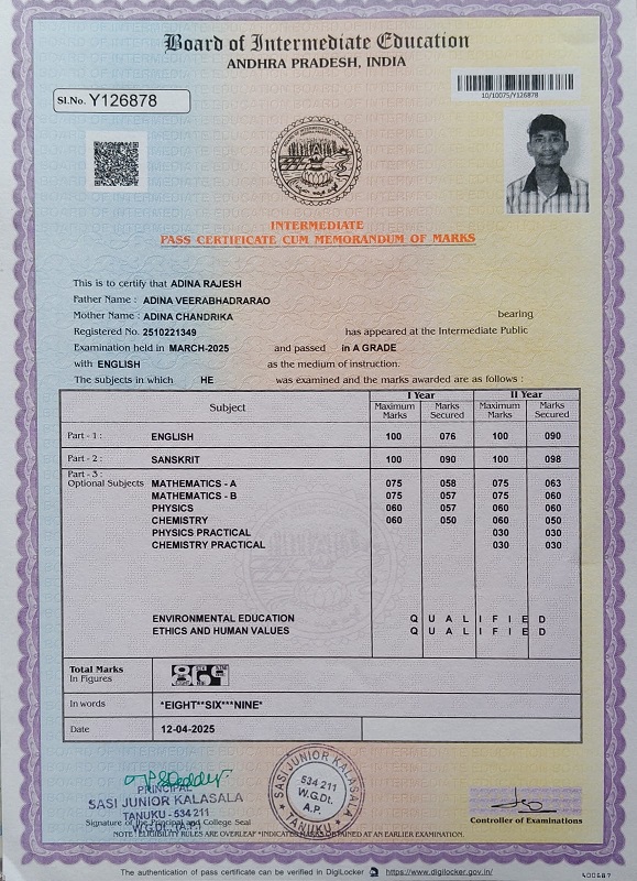 | Bighelp thanks Murali Pasumarti for kindly sponsoring the education of Rajesh Adina. |
