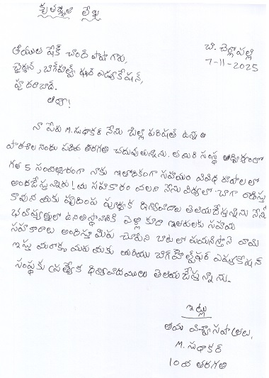 | Bighelp thanks Pavan Kumar for kindly sponsoring the education of Venkata Sudhakar Muvva. |