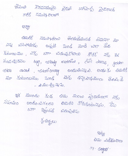 | Bighelp thanks Rishi Ravilla for kindly sponsoring the education of Sagar Thodengala. |