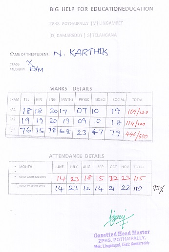 | Bighelp thanks Dr. Radha Kishan Motkuri for kindly sponsoring the education of Karthik Neeradi. |
