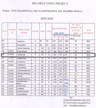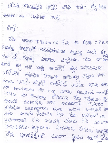 | Bighelp thanks Venkata Suresh Alapati for kindly sponsoring the education of Bhanu Sri Thipparapu. |