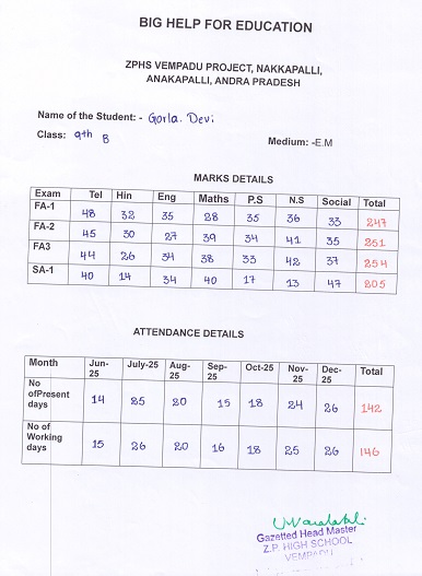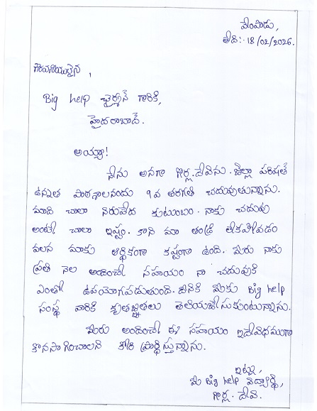 | Bighelp thanks Nilesh & Deepa Bhagat for kindly sponsoring the education of Devi Gorla. |