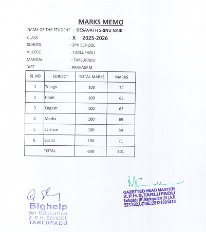 | Bighelp thanks Xitiz Bhatia for kindly sponsoring the education of Srinu Naik Desavath. |