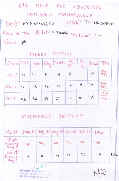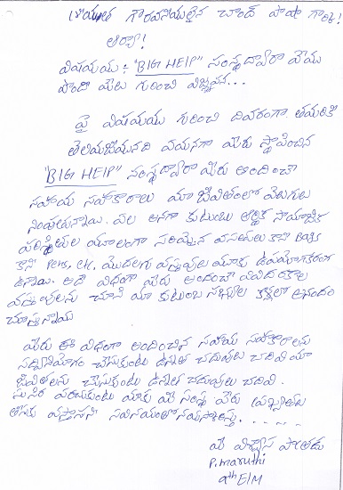 | Bighelp thanks Madhu Seela for kindly sponsoring the education of Maruthi Pavurala. |