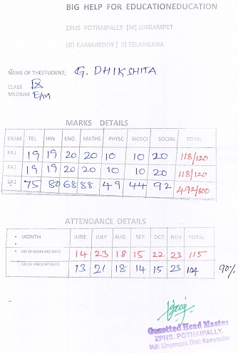 | Bighelp thanks Pfizer Foundation for kindly sponsoring the education of Dikshitha Geraboina. |
