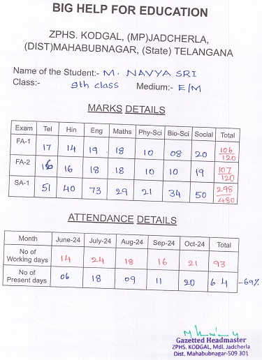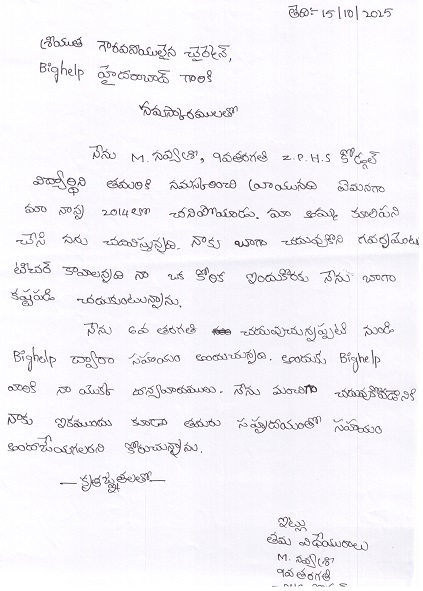 | Bighelp thanks Sandeep Rayadurgam Mohan for kindly sponsoring the education of Navya Sri Munnuru. |