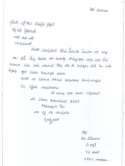 | Bighelp thanks Priyanka Kodiripaka for kindly sponsoring the education of Kartheek Pappala. |