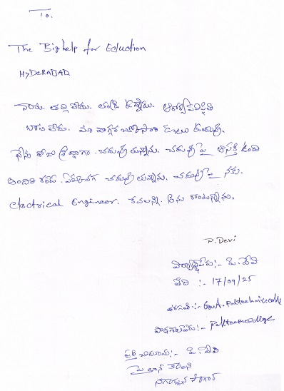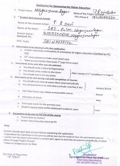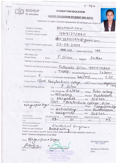 | Bighelp thanks Vijay Konda for kindly sponsoring the education of Devi Pallavola. |