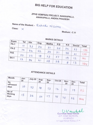 | Bighelp thanks Your Cause, LLC Trustee for Master Card for kindly sponsoring the education of Naveen Rakathi. |