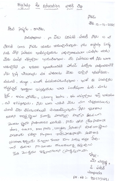 | Bighelp thanks Preethi Dacha for kindly sponsoring the education of Harini Parapati. |