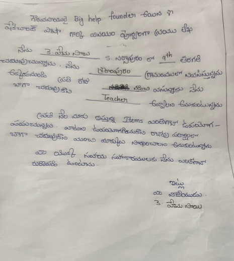 | Bighelp thanks Akaash Seemakurty for kindly sponsoring the education of Hemasai Kadimi. |