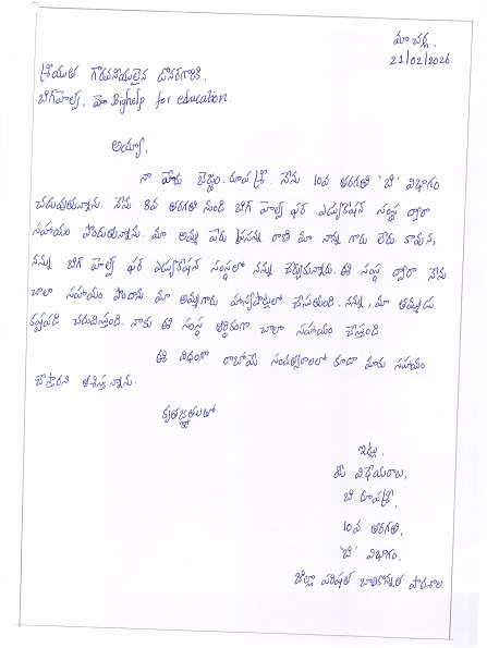 Bighelp thanks Sree Ramachandra Murthy Ravuri for kindly sponsoring the education of Rupasri Bejjam.