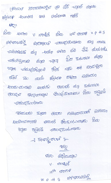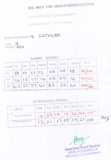 | Bighelp thanks Bhanusupriya Somarouthu for kindly sponsoring the education of Sathwik Vadla. |