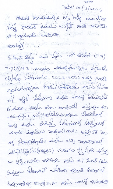 Bighelp thanks Pavani Ranga for kindly sponsoring the education of Vishnu Chettukindhi.