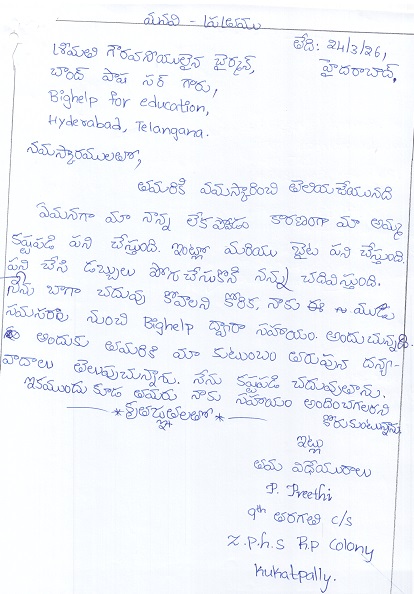 Bighelp thanks State Street Matching Gift Program for kindly sponsoring the education of Preethi Polisetti.