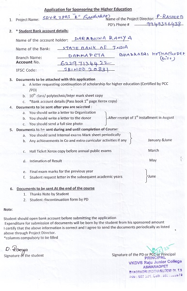 | Bighelp thanks Pawan Gupta for kindly sponsoring the education of Ramya Daraboina. |