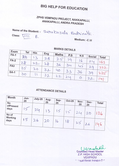 | Bighelp thanks Shashidhar Sultanpur for kindly sponsoring the education of Badrinath Surakasula. |