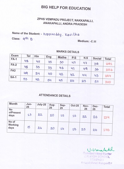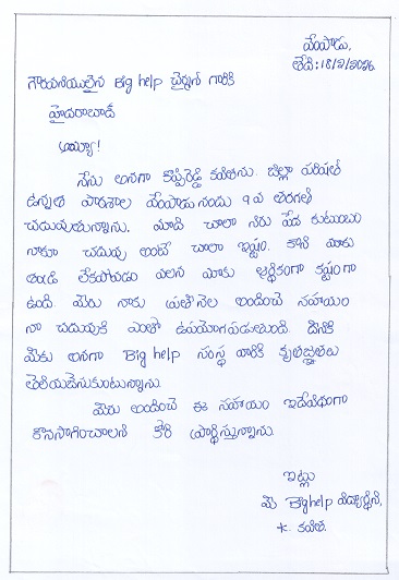 | Bighelp thanks Lava Kumar Gunnam for kindly sponsoring the education of Kavitha Koppireddy. |