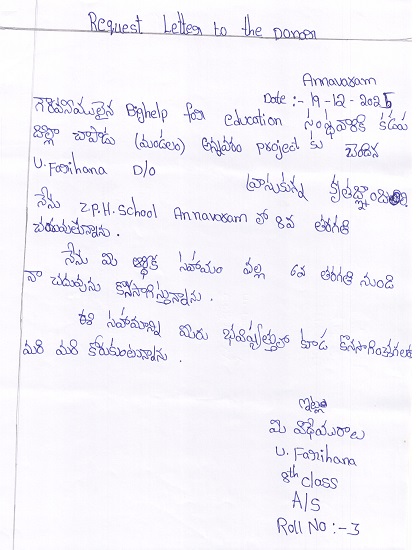 | Bighelp thanks Rishik Vihaan Rajesh Muguda for kindly sponsoring the education of Farihana Venkannapalli. |