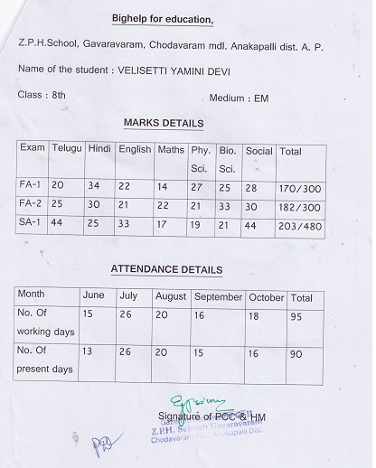 | Bighelp thanks Rimsha Nigam for kindly sponsoring the education of Yamani Devi Velisetti. |