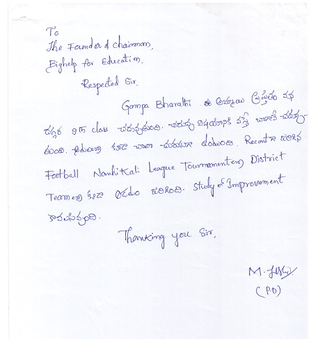 | Bighelp thanks Swapna Kala for kindly sponsoring the education of Bharathi Gompa. |