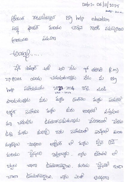 Bighelp thanks Siva Nidamarthy for kindly sponsoring the education of Sahil Ali Shaik.