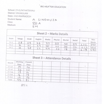 | Bighelp thanks Ramesh Kumar Ramamuni for kindly sponsoring the education of Sindhuja Akula. |