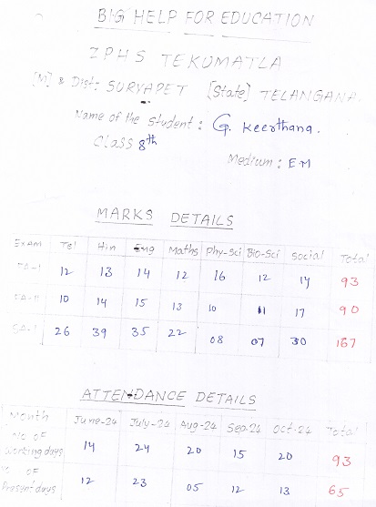 | Bighelp thanks Kiran & Sravanthy Ganji for kindly sponsoring the education of Kirthana Gandamalla. |