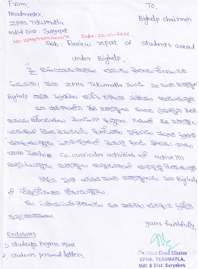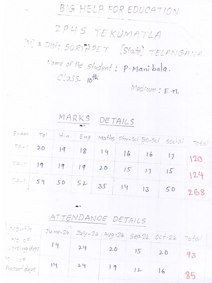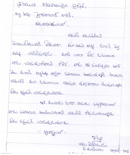 | Bighelp thanks Suresh Kandru for kindly sponsoring the education of Mani Bala Pindiga. |