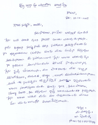 | Bighelp thanks Madhumita and Udayan Dutta for kindly sponsoring the education of Poojitha Bommali. |