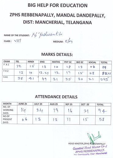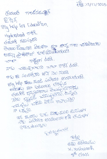 | Bighelp thanks Praveen Polepalli for kindly sponsoring the education of Yaswanth Nandanakari. |