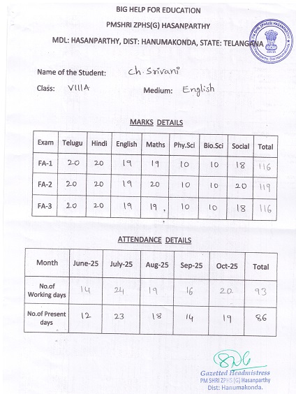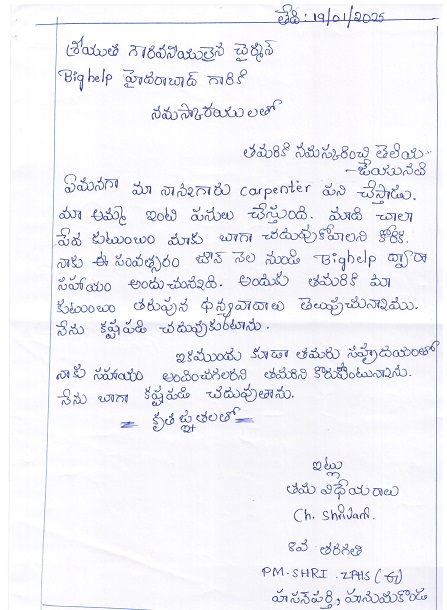 Bighelp thanks Hariram Mani for kindly sponsoring the education of Srivani Chengelli.