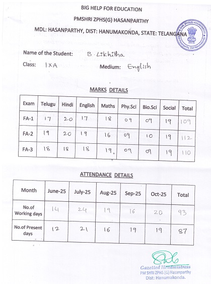 Bighelp thanks Vijaya Mohan Atturu for kindly sponsoring the education of Likhitha Banoth.