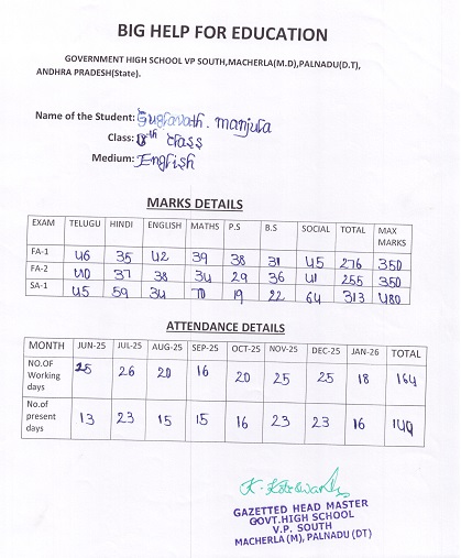 Bighelp thanks Priyanka Pradhan for kindly sponsoring the education of Manjula Gugulothu.
