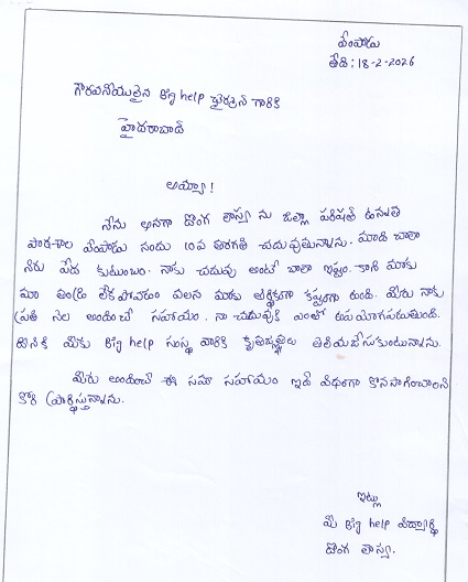 Bighelp thanks Praanikya Varhi Marisetti for kindly sponsoring the education of Lasya Donga.