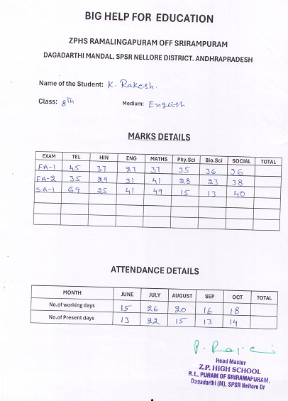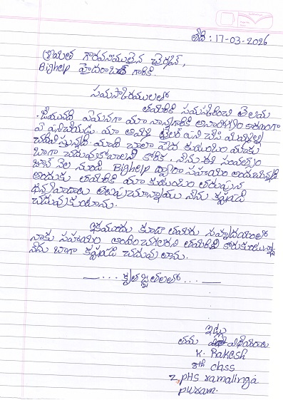 | Bighelp thanks Bighelp Brightstar for kindly sponsoring the education of Rakesh Kondamuri. |