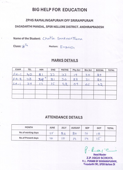 Bighelp thanks Karthik Balasubramanian for kindly sponsoring the education of Sankeerthana Chatla.