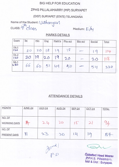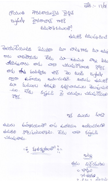 Bighelp thanks Kalidas Porika for kindly sponsoring the education of Bhargavi Ullendula.