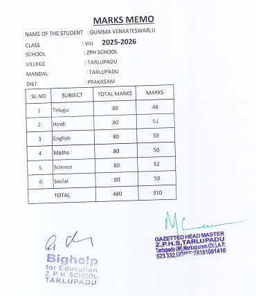 Bighelp thanks Suresh Edara for kindly sponsoring the education of Venkateswarlu Gumma.