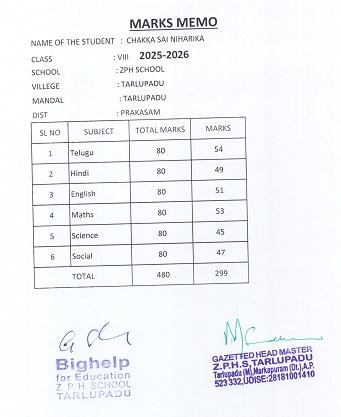 Zilla Parishad High School Tarlupadu Tarlupadu Mandal Prakasam Dist. AP, India 523332 |