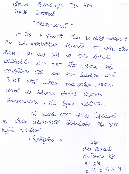 Bighelp thanks VMware Foundation for kindly sponsoring the education of Bhanu Teja Chintamalla.