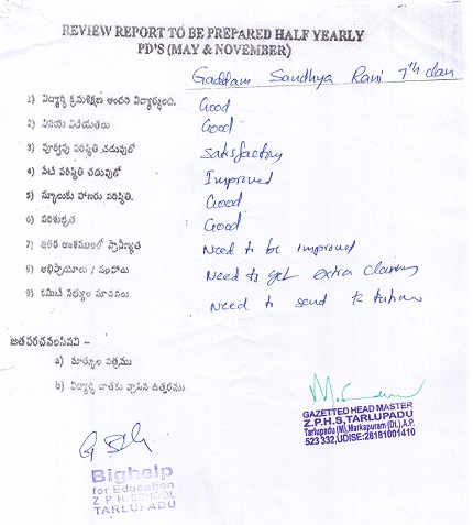 Bighelp thanks Durga Krishna Kanth Dodda for kindly sponsoring the education of Sandhya Rani Gaddam.