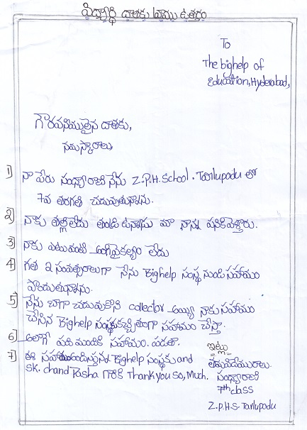 On File Mother died. Financially very poor Female 7 6 Telugu