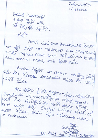 Bighelp thanks Bighelp Brightstar for kindly sponsoring the education of Navadeep Donthu.