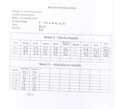 Bighelp thanks Ravi Avula for kindly sponsoring the education of Niharika Thi.