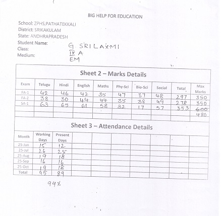 Bighelp thanks Priyanka Pradhan for kindly sponsoring the education of Srilaxmi Gangitla.