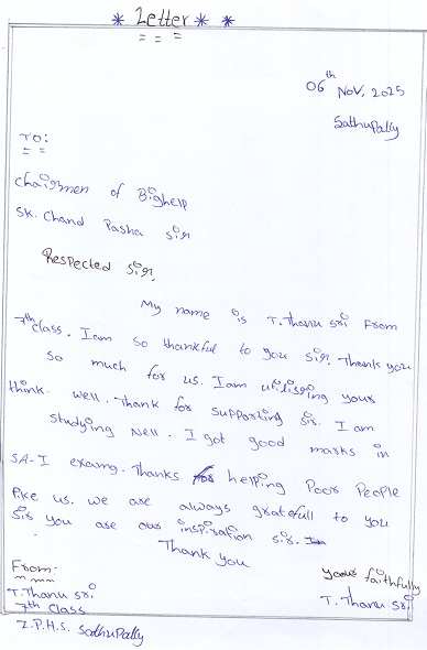 Bighelp thanks Praveen Kumar Valapadasu for kindly sponsoring the education of Thanusri Thalluri.